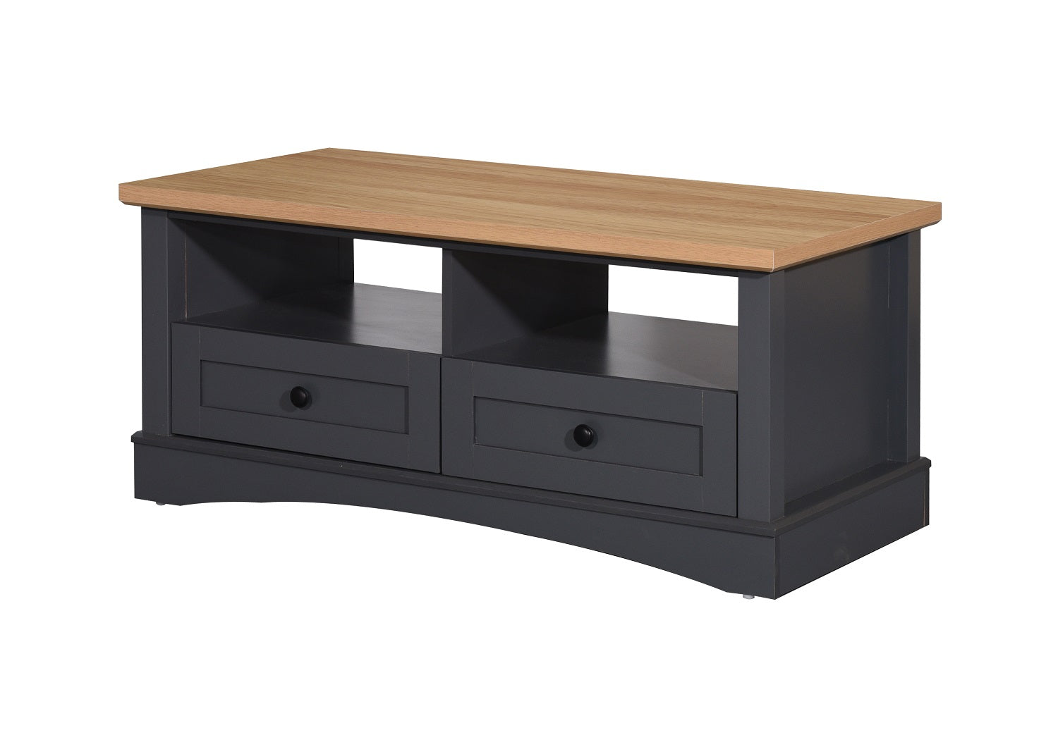 Complete with a large table top area that gives you plenty of usable display space, as well as two drawers and an open space that is great for neatly storing magazines and books.