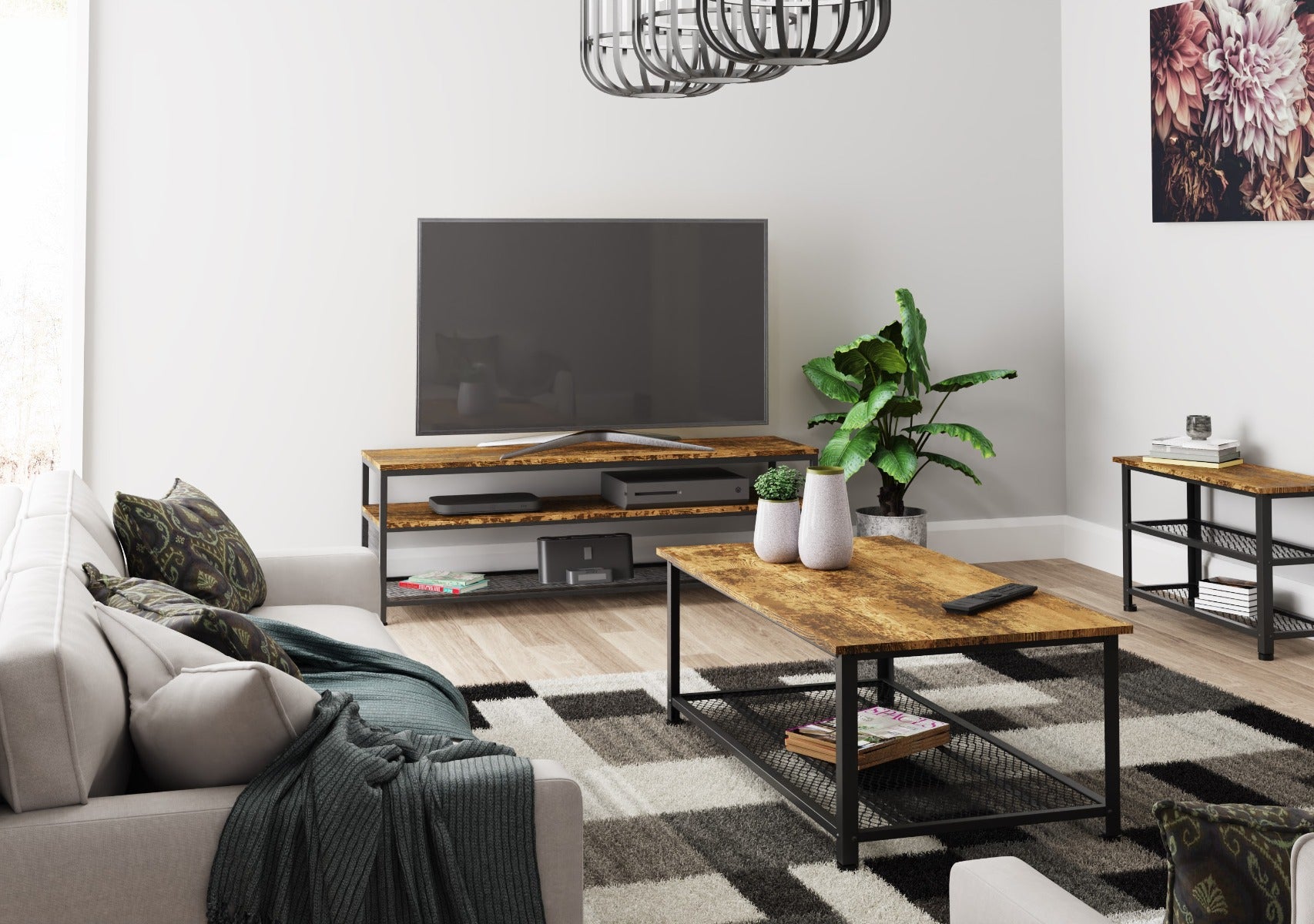 The Bala Range combines rustic wood grain style with black metallic frames, which blends seamlessly with any décor making it the perfect fit for any home. This beautiful vintage style is ideal for living room or bedroom spaces.